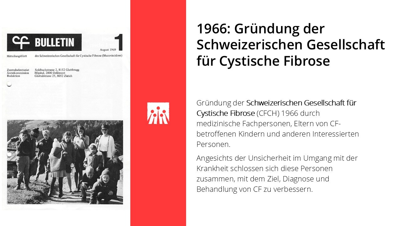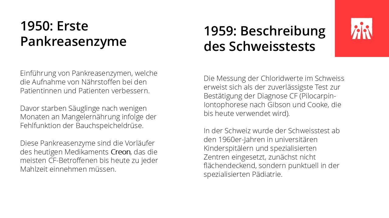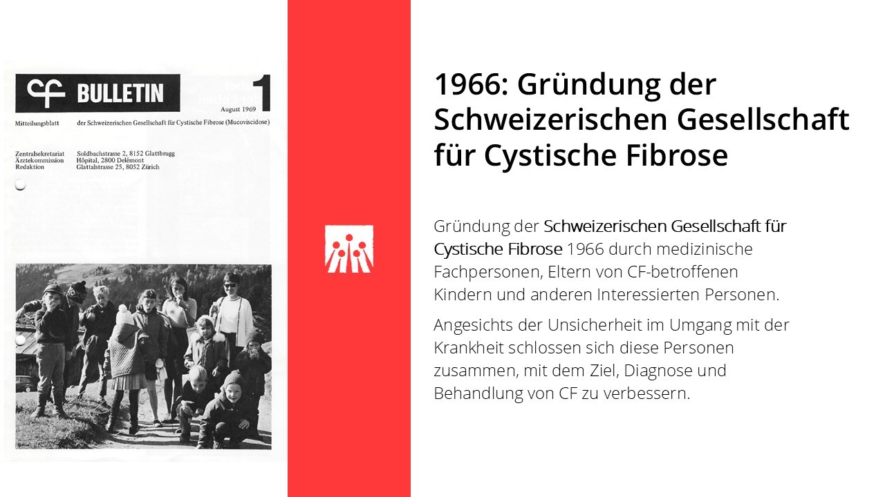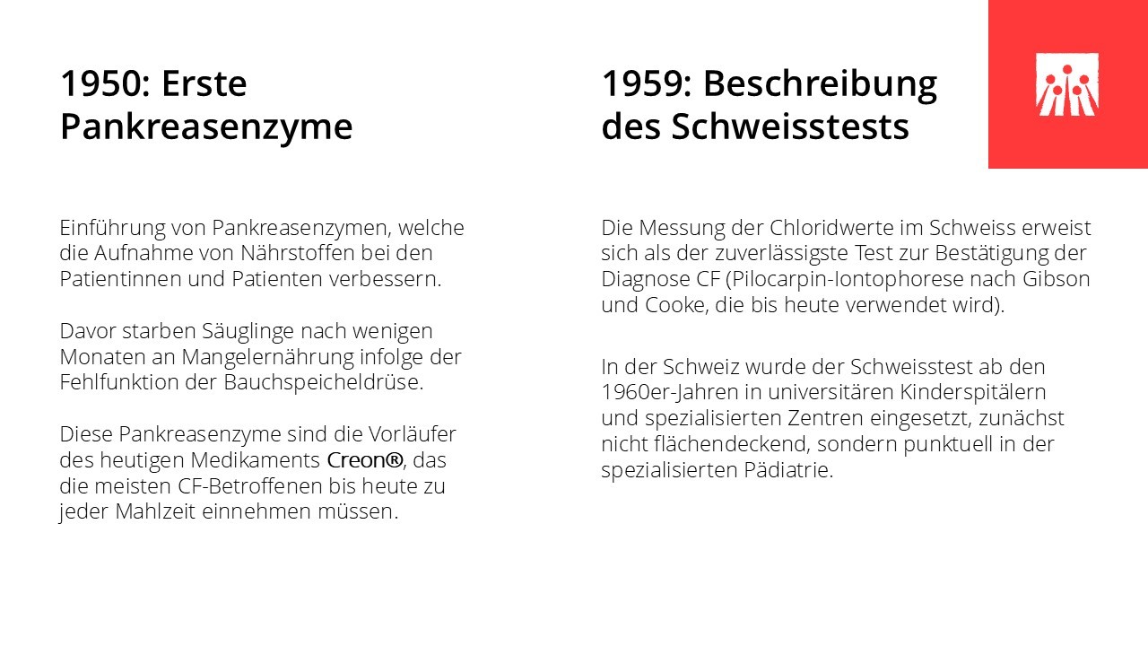 Die folgenden Meilensteine zeigen, wie sich Versorgung und Lebensperspektiven von Menschen mit Cystischer Fibrose in der Schweiz in den letzten 60 Jahren Schritt für Schritt verändert haben.