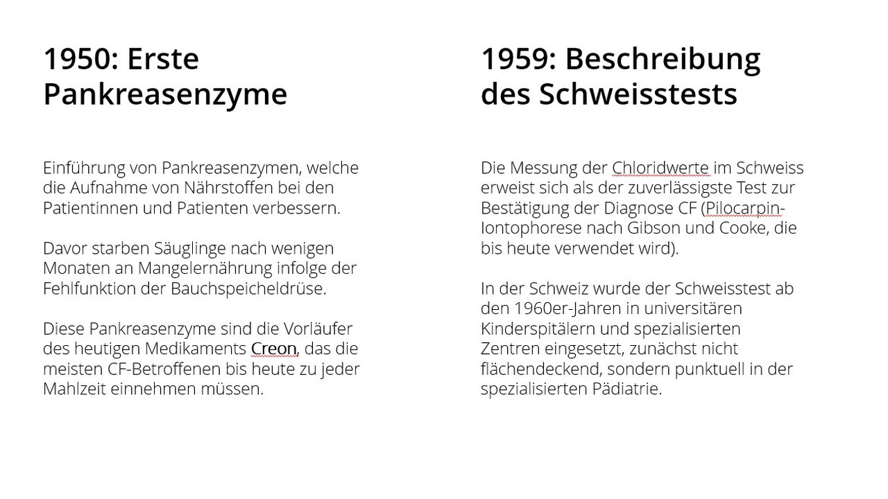 Die folgenden Meilensteine zeigen, wie sich Versorgung und Lebensperspektiven von Menschen mit Cystischer Fibrose in der Schweiz in den letzten 60 Jahren Schritt für Schritt verändert haben.